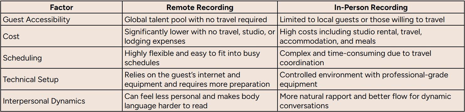 Remote vs In-Person Recording at a Glance